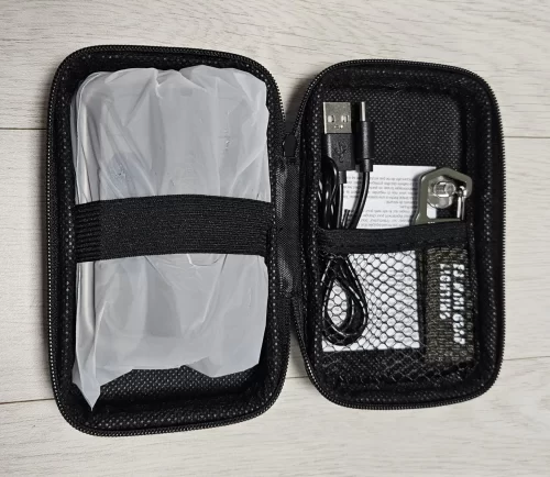 The brightness is good, and the pouch is tight which is actually nice.